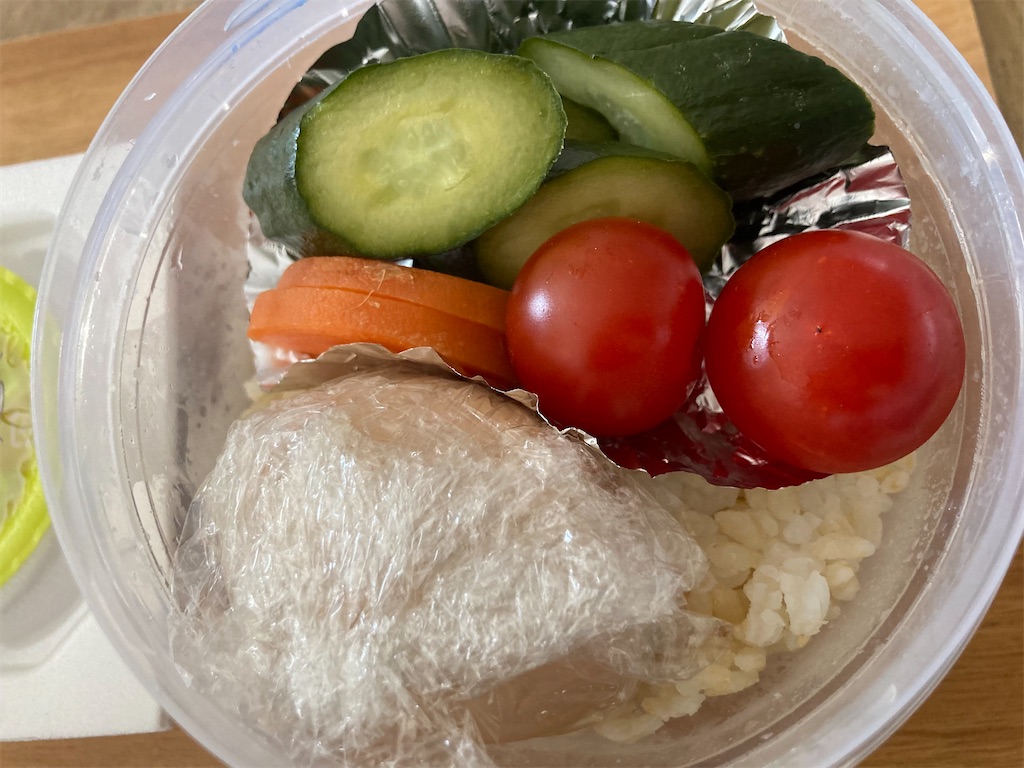 基本的にはこれをお昼に食べますが、たまに外食や子供に作ったお弁当の残りを持っていって食べた日は、夜にこのセットをいただきます。
